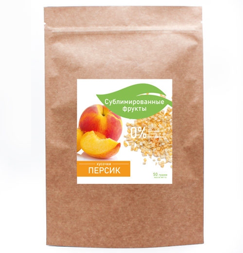 Лето будет не настоящим без вкусного сочного персика. А воспоминания о тех теплых солнечных деньках таятся в упаковке сублимированного персика. Для его изготовления используется сорт, который оранжево-красный снаружи и желтый внутри.